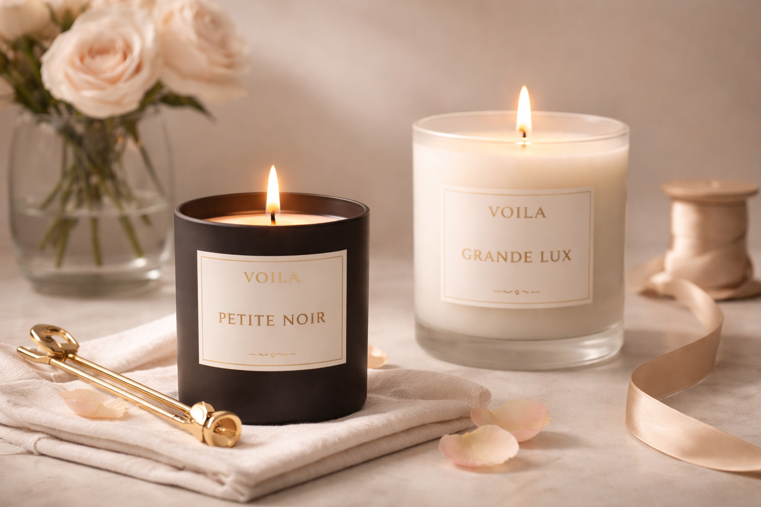 Voila Candles steht für handgegossene Duftkerzen aus hochwertigem Sojawachs.